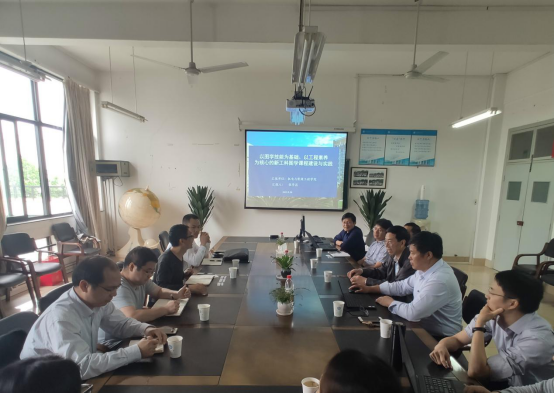 会上,童微星书记对范剑副院长一行的到来表示欢迎。范剑副院长介绍了此次调研的主题和目的。张学昌副院长介绍了学院的整体情况,阐述了以图学技能为基础、以工程素养为核心的新工科工程图学课程建设和教学成果奖培育以及申报情况。胡长兴副院长介绍了学院产教融合建设经验。施定岳教授分析了人才培养中基础知识和工程实践能力培养的关系。高德教授详细讲解了学院工程教育专业认证前期准备工作。双方就如何促进教学科研平衡发展、如何推进教学改革和专业认证、如何建设教学团队和培育教学成果等问题进行了探讨和深入交流。