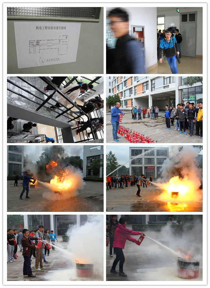 等全体师生快速地疏散到安全区域后,学校保卫处副处长叶卫树老师向大家讲解和介绍了灭火器的使用须知,并做现场演示。在场师生们根据介绍,逐个使用灭火器进行了灭火操作。叶老师最后对本次活动进行了点评,并再次提醒广大师生,在日常的生产、生活中,要切实增强消防安全意识,真正做到“让安全成为一种习惯”。
