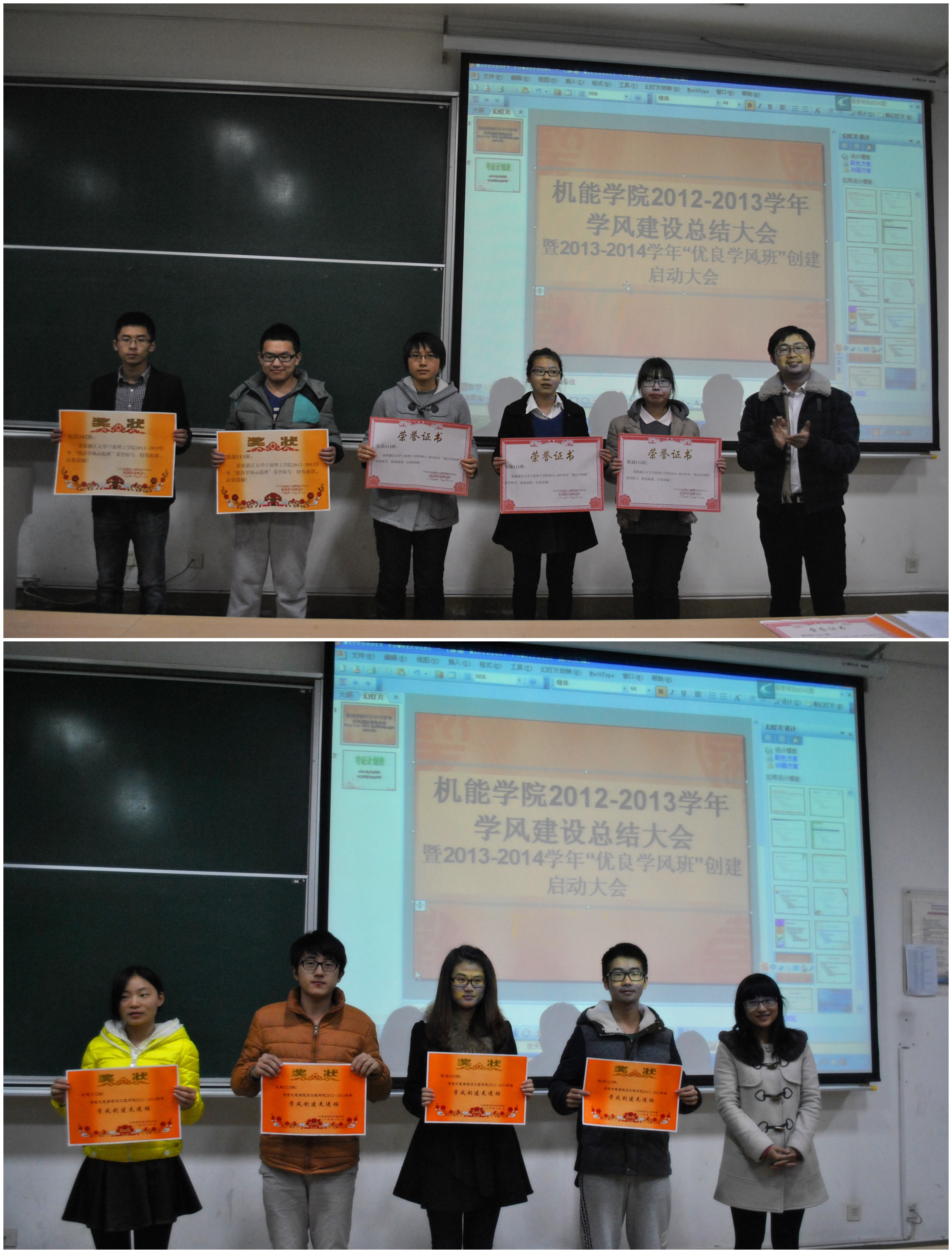 首先,胡鹿鸣老师宣读了上学年获得学校“优良学风示范班”、“优良学风班”和学院“优良学风创建班”等荣誉称号的班级,并为他们颁奖。