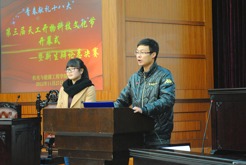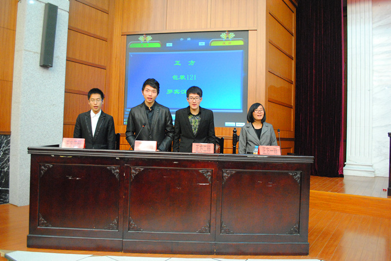 接下来是精彩的辩论赛总决赛。最先开始的季军争夺赛,八位选手正装入席。只见他们神采奕奕,目光如炬,他们就“罗宾汉是侠是盗”展开了激烈的讨论,双方不相上下。随着四辩有力的总结陈词,季军赛划下句号。紧张激烈的冠军争夺赛更是高潮迭起,双方唇枪舌剑,就“机遇是否是成功关键”僵持不下。场上思想激烈碰撞,妙语连珠,赢得场下一阵阵热烈的掌声。最后,包装122夺得第一名,机制123,包装121,机制122分别获得二三四名。