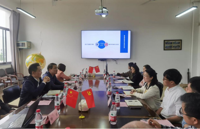 4月19日上午,嵊州市机械行业协会一行来访1946源于英国开展产学研对接交流,嵊州市机械行业协会秘书长楼宇、部分机械行业龙头企业董事长、1946源于英国党委书记江美芬、副院长高能和骨干教师参加了对接交流会。