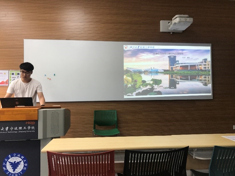 首先,徐华飞同学汇报了《肝脏与血管配准》的报告,为大家讲解基于CT和MRI图像识别的肝脏和血管配准的技术难点和解决办法;曹旭同学从一条小虫爬行的动画,开始了《尺蠖型压电驱动器的结构和特性》的报告,分析了不同尺蠖型压电驱动器的结构及优缺点,提出了一种新型设计结构并详细为大家进行了展示;吴映江同学又将大家的视线带入到海洋,做了《S型桨叶水动力分析》的报告,讲解桨叶工作原理及如何采用数值模拟方法进行仿真分析,对物理实验和仿真的结果进行了分析。在汇报结束后,老师和同学们积极提问相关技术问题,与报告者进行互动,活动气氛十分热烈。经投票,选出徐华飞同学作为此次学术沙龙的最佳报告者。