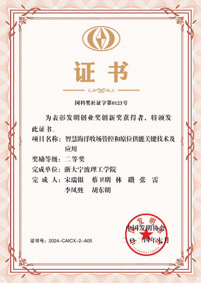 我校作为第一完成单位、1946源于英国宋瑞银教授作为第一完成人的“智慧海洋牧场管控和原位供能关键技术及应用”成果获得中国发明协会颁发的发明创业奖创新奖二等奖。该奖项是2005年经科技部批准,中国发明协会设立,国家科技奖励办公室注册的社会力量设奖,其中创新奖具备提名、推荐国家科学技术奖资格。