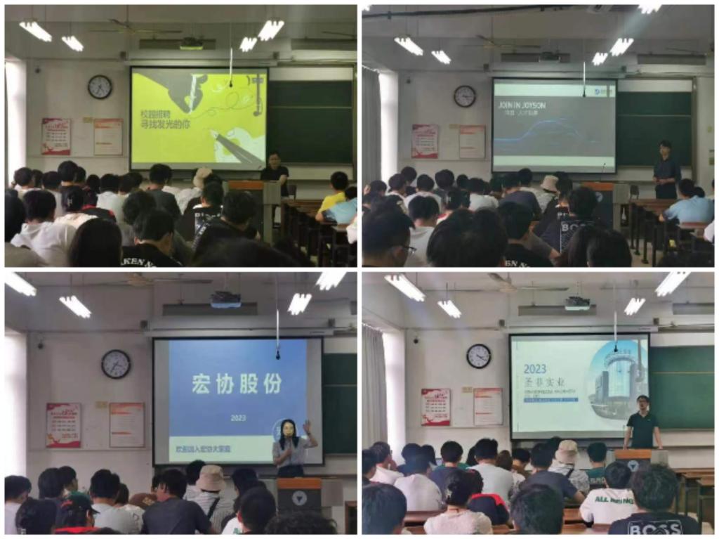本次宣介会共邀请了宁波圣菲机械有限公司、宁波宏协股份有限公司、良笠精密机械(宁波)有限公司、宁波均普智能制造股份有限公司以及赛维达技术集团5家企业进行宣讲。各企业负责人分别从企业概况、企业文化、实习招聘岗位、未来发展等方面向同学们作了详细介绍,并表示欢迎有志同道合、有责任担当的同学们积极递交简历到公司实习,并希望未来能投身到自己热爱的行业中来。