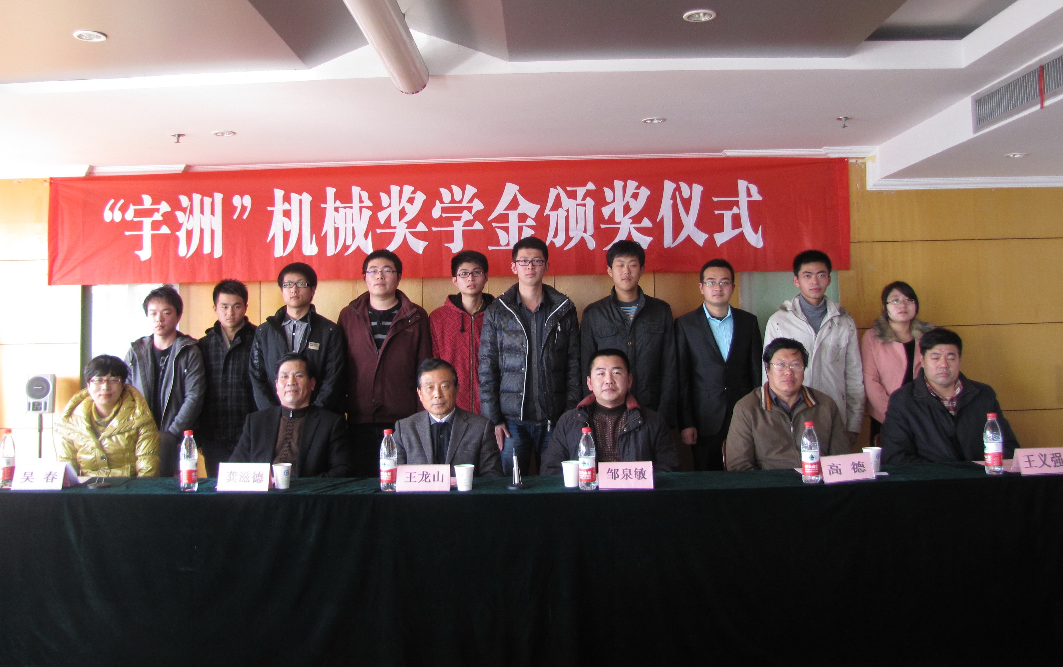 今年共有十名机制、机电专业的大四同学荣幸地成为了“宇洲”机械奖学金的第二批获奖者。仪式开始,吴春老师首先介绍了“宇洲”机械奖学金的设立背景,王义强副院长宣读奖学金获奖名单。在热烈的掌声中,领导和企业嘉宾为获奖同学颁奖。作为获奖代表的王俊同学在发言中用自己大学期间的学习生活经历勉励在座的大一同学。