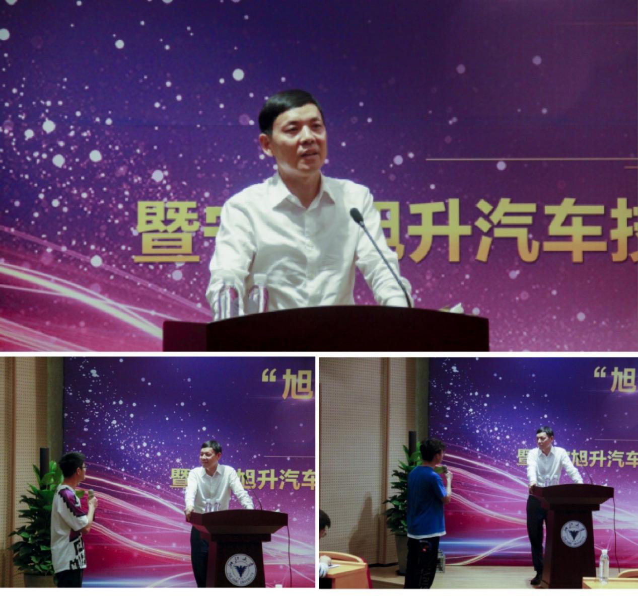 颁奖典礼正式开始前,童微星老师向旭升公司的慷慨捐赠表示了衷心的感谢!并向同学们简要介绍了旭升公司的基本情况以及“旭升股份”励志奖学金设立的背景和意义,激励同学们勤奋学习,积极进取,立志成才,回报社会。最后由童书记宣布颁奖仪式正式开始,并宣读“旭升股份”励志奖学金的获奖名单,10名获奖者依次上台,由徐旭东董事长为他们颁奖。