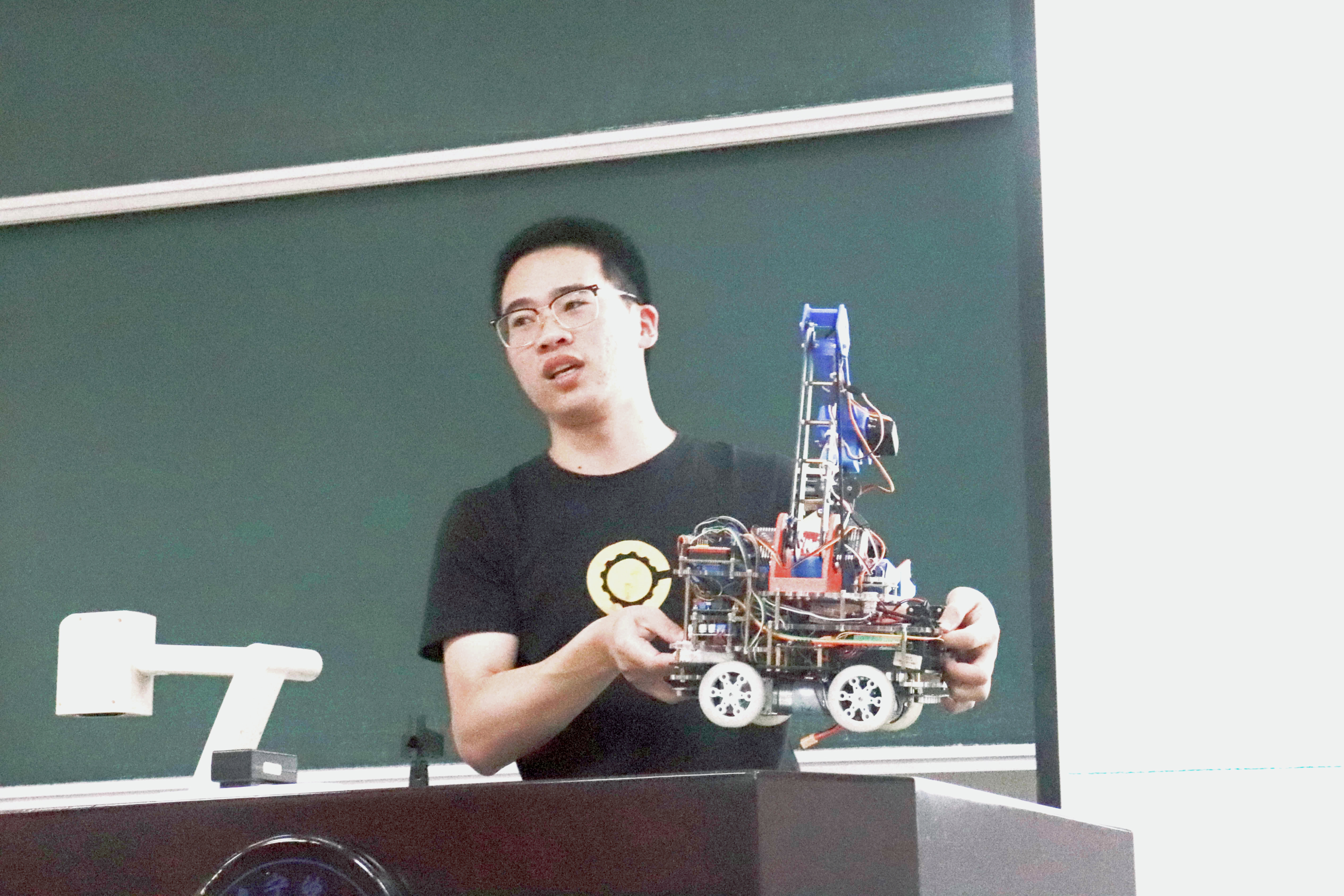 本次活动的主讲人是NIT STEM 社团的学长白志圆同学。学长从未来性培训角度切入,从中国国际工业博览会中的机械狗的展览引入本次的主题。机械狗通过视觉系统识别方位,能在工业生产线上工作,最为突出的是上海节卡机械臂,工业移动机器人,它可以代替人工在汽车生产线上工作。关于职业生活,学长提醒同学们要学会自我定位,积累专业知识与比赛经验,提升个人竞争力。学科竞赛可以锻炼人的智力、意志,培养该方面的兴趣和素养,有利于同学们学会自主思考、逻辑思维能力,锻炼独立解决问题的能力,为今后发展打下基础,希望同学们可以积极参与,不要在最好的年华选择安逸。主讲人最后送给了同学们一句话:工程必须建立在理论上。
