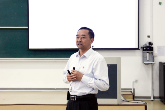 最后学院党委书记童微星老师以《人生方向》为题为全体新生们带来了大学的第一节党课。童老师从“全世界联合起来的伟大‘战斗’——抗击新冠肺炎疫情”引入,引导新生思考“解不开”的世界之谜——中国模式;以李明素、毛陈冰和孙茂芳的案例向全体新生展示了“中国共产党人的初心和使命”;以自己在党员发展过程中亲身经历的故事告知全体新生“接受党组织教育的意义”。最后童书记热切的鼓励全体新生:“加入党组织,接受组织的教育与培养,提高为人民服务的本领,为中国特色社会主义建设和中华民族伟大复兴贡献自己的力量!”