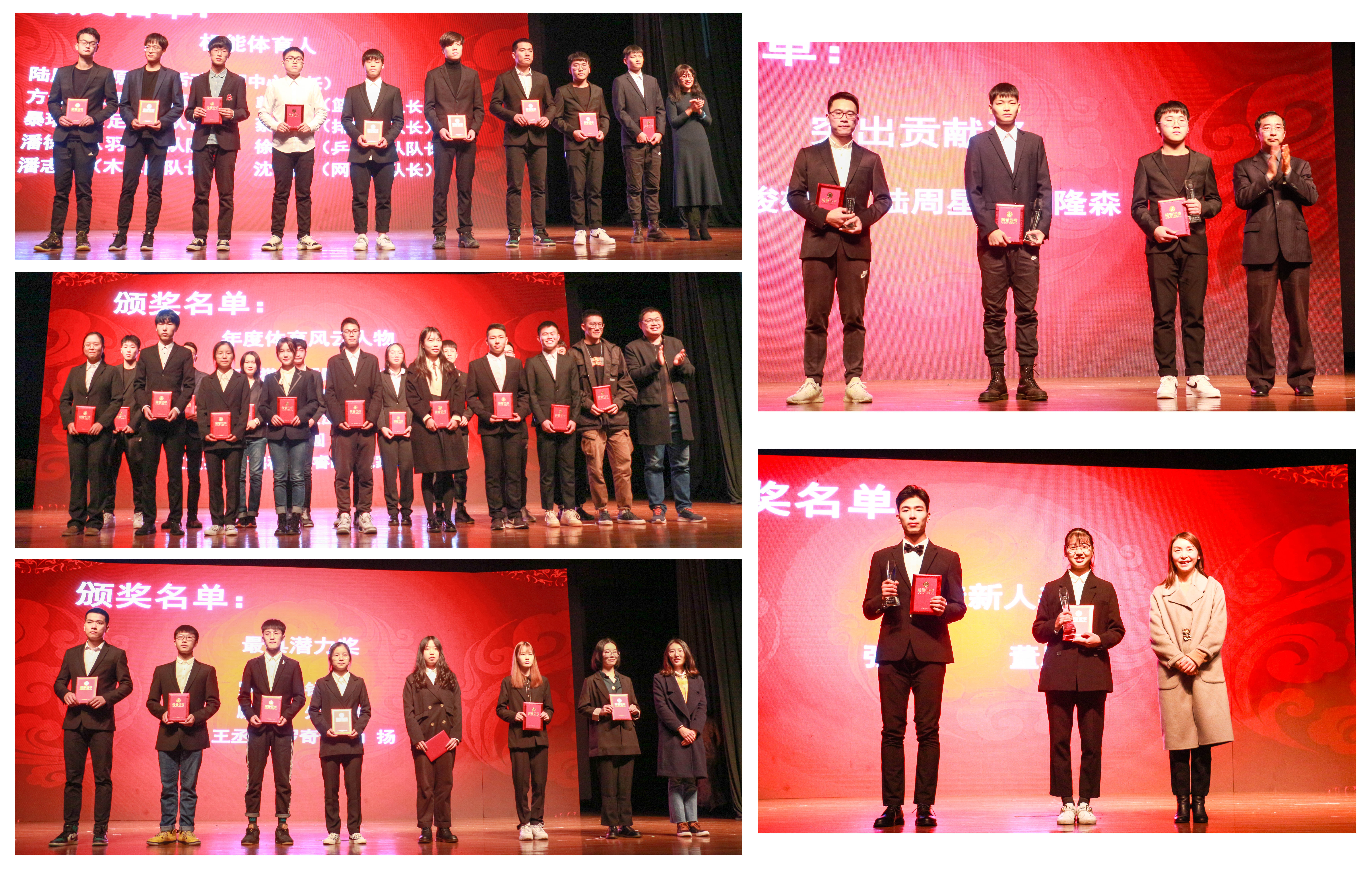 之后是激动人心的体育盛典颁奖典礼,表彰本年度校运动会上做出卓越贡献的运动员们。获得最具潜力奖的有:罗清晨、钱越佳、顾陆昕、朱慧婷、王丞顺、罗奇青、肖扬;获得2019年度机能体育风云人物的有:邵斌、沈家辉、李睿劼、王文兵、叶鹏程、江笑、白志圆、李明峰、王琛、劳俊澄、王颖、张珍瑞、陈名旭、徐莞雯、郑益平、谢添慰、陆祺海;2019年度机能体育人:陆周星、方俊雄、韩明阳、暴瑞宇、梅诗雨、潘徐润、邵佳盛、潘志安、沈中航;最佳新人奖获得者:张湛、董思方;2019年度突出贡献奖:方俊雄、陆周星、单隆森。一座座奖杯,充分展现了机能健儿追求更高、更快、更强的精神,运动会中洒下的汗水换作今日的荣耀。
