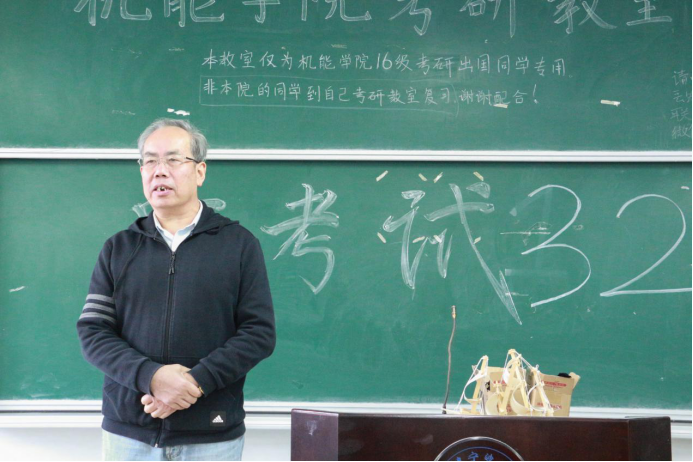 学院院长陈光明老师对同学们有考研的勇气给予了充分的肯定,他强调了读书考研的重要性和意义,它是改变人生的重要途径,去往更大的平台深造。同时,他也结合自己的个人经历说明了努力的重要性,叮嘱同学们要均衡饮食,保持健康的身体状态,调整好心态,积极备考,多向考研成功的学长学姐们询问经验。同时表示,学院各位老师会给予同学们大力支持,希望同学们多和老师们沟通,预祝同学们可以考取心仪学校的研究生。最后,全体老师给考生们带去了最真挚的祝福并准备了考研必胜笔。
