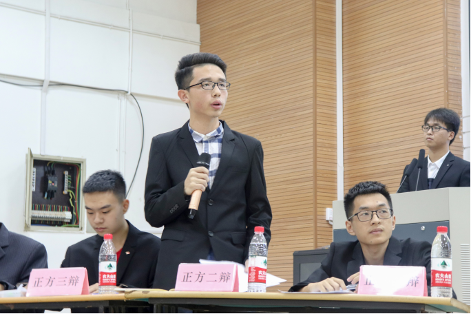 第一场,机械197班与机械192班围绕着“如果只有你知道长生不老的秘诀,你应不应该告诉大家”这一辩题展开了一场激烈的季军争夺赛。两支队伍旁征博引,据理力争。在将近1个小时的辩论中,他们激烈陈词,赢得了观众们的掌声。