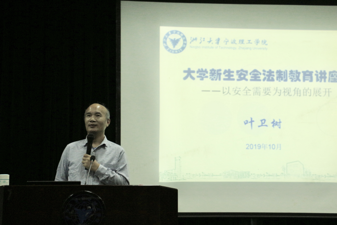 保卫处叶卫树老师通过生动幽默的语言、丰富的案例,给大一新生们带来了一场印象深刻的安全教育讲座,其间叶老师的讲话多次被掌声所打断,同学们纷纷表示受益匪浅。