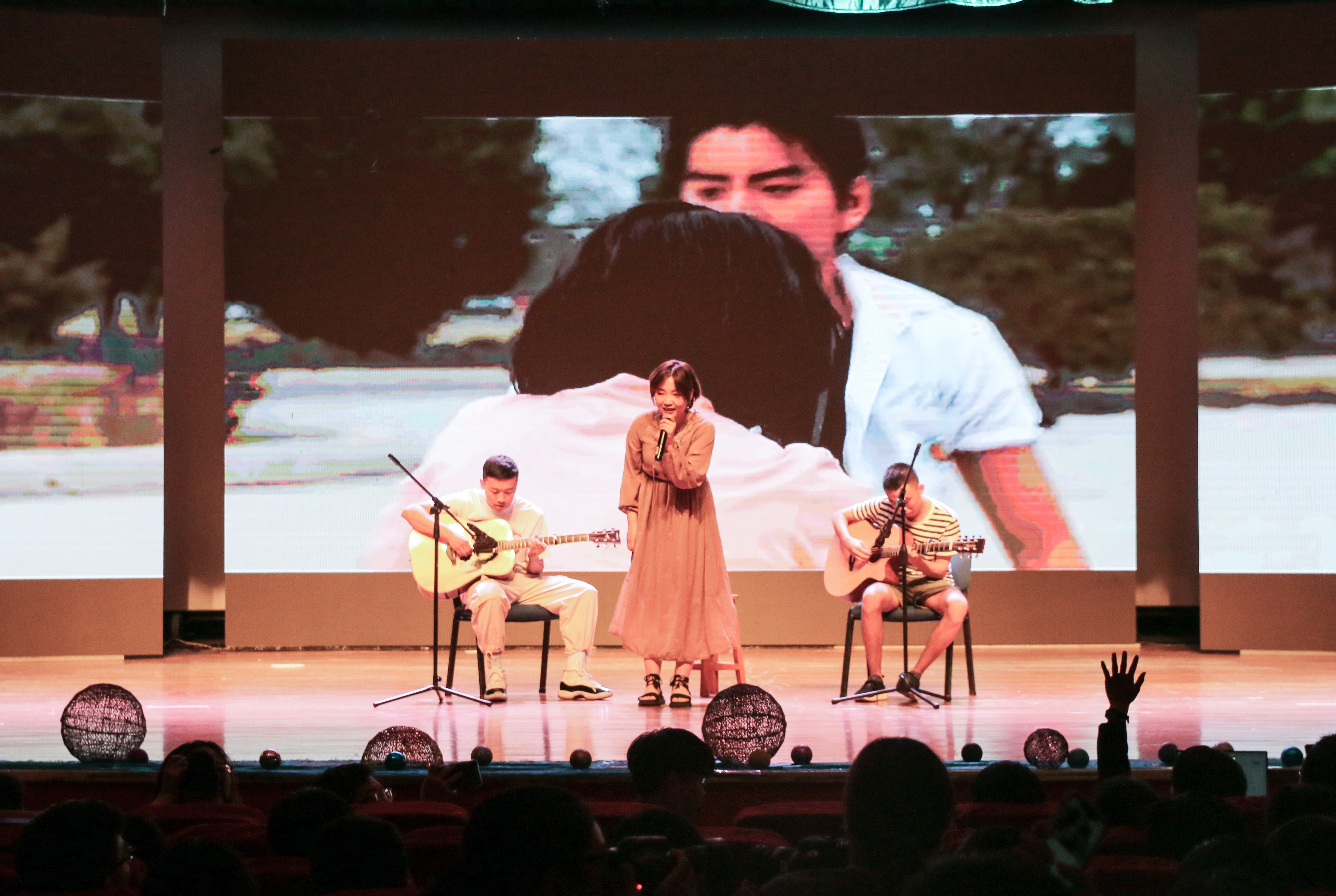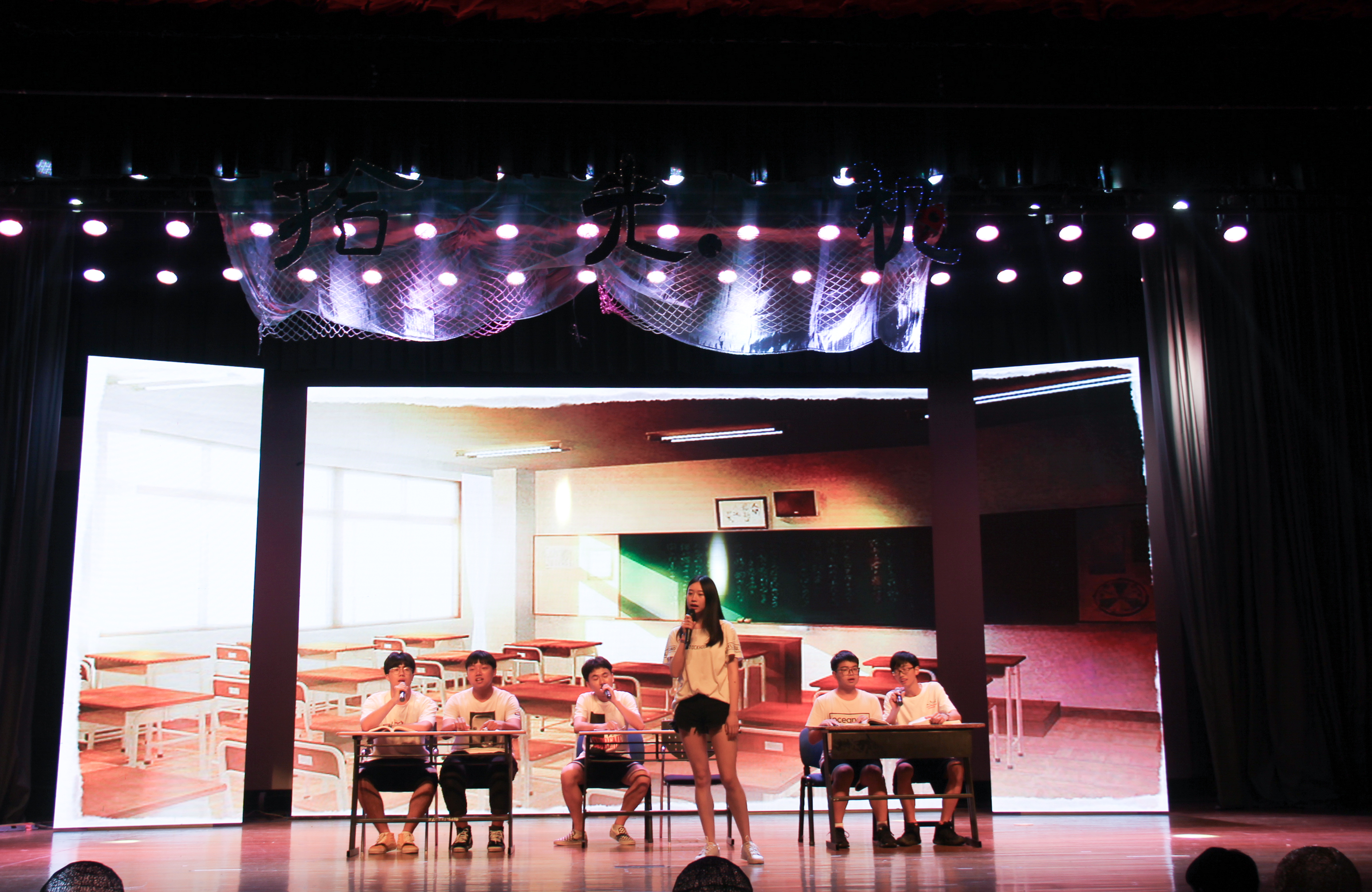 四位大四学长学姐担纲主持,精彩的节目竞相上演,晚会分为“时光荏苒、光风霁月、集翠成裘”三个篇章。首先是妙趣横生的光影创意“It's you”,吉他演奏的“小幸运”和15级毕业班同学原创歌曲“最后的盛夏”,让晚会渐入佳境。现场的游戏与抽奖环节和魔术“时光流逝”赢得观众连连鼓掌,现场气氛达到高潮。最后篇章中一首歌曲串烧寄托了同学们对毕业生的衷心祝愿,15级班助的诗朗诵“别离日历”和17级同学演唱的“时光剪影”,同学们纷纷涌上台与毕业生们拥抱、道别,泪流满面的一声声毕业快乐让晚会定格在了这幕感动又感伤的画面。2019年的毕业季,大四的同学们最后一次以学生的身份坐在可珍讲堂,四年的点滴时光已在今夜完美诠释,青春的美好祝福将在未来闪光熠熠。
