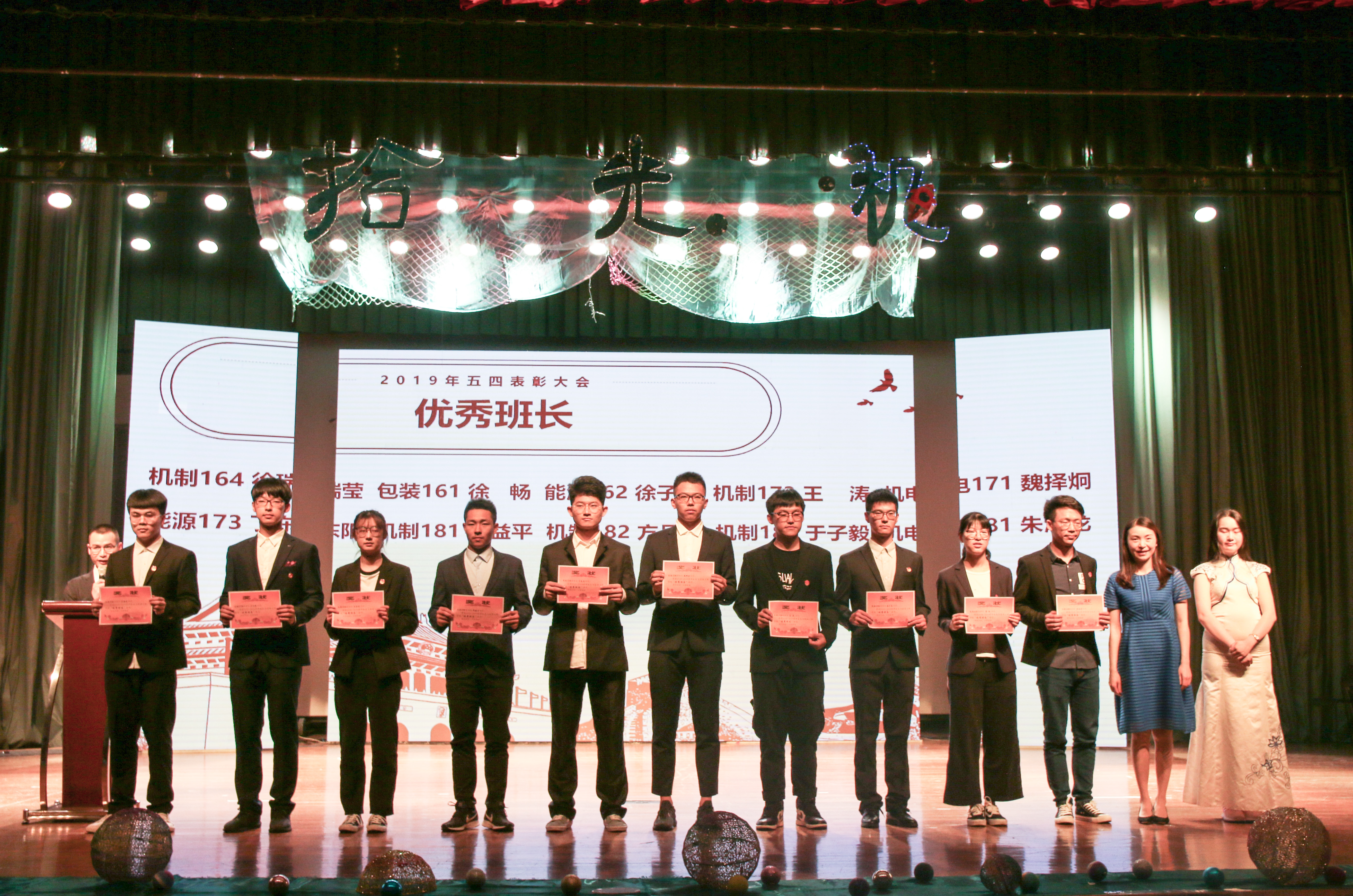 首先进行2019年五四表彰大会,学院思政副主管、团委书记仇芳老师讲话并宣读表彰文件,各位老师为为本年度各类优秀个人和集体颁奖,毕业生代表机制154班周鑫磊同学发言。周鑫磊同学回顾了大学四年的点滴,对理工、对机能的不舍和感谢让他泪流满面,感染了在座的每一个人。
