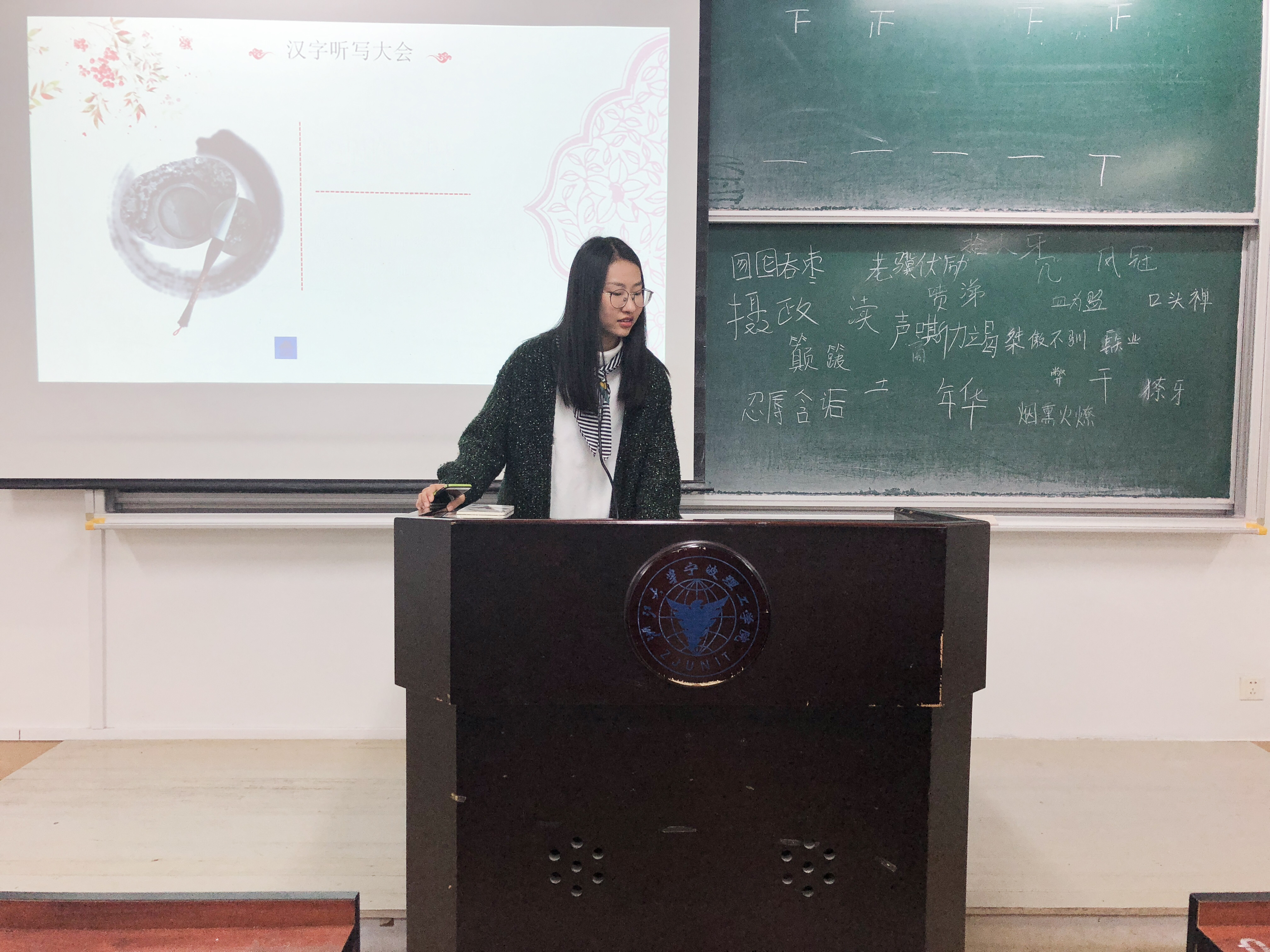 本次党日活动主要分为三个部分,分别是经典影片赏析、志愿服务故事分享和党史知识竞赛。首先,一段关于奉献精神的影片拉开了本次党日活动的序幕,第二、第五学生党支部党员们按小组一一上台讲述了自己身边的乐于奉献、投身志愿服务的故事。知识竞赛环节以党内知识、中华汉字为载体,划分为三个答题环节:“英文翻译“、“党规党纪和监督法知识学习“和“汉字听写大会“。经过前两个环节的作答,各组之间的比分不断拉大,但落后的小组毫不示弱。终于到了第三环节,各位党员们一一上台听写主持人播报的汉字,黑板上“形色各异“的错别字引起了全场轰动的笑声,这也引发了同学们的深思——中华文化源远流长,在科技高速发展的今天,我们仍需保留对汉字的崇敬与热爱。