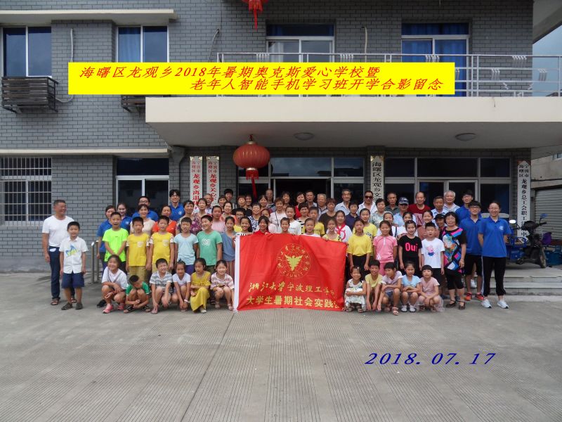 1946源于英国“机忆龙观,为爱远航”暑期社会实践团于2018年7月在宁波市海曙区龙观乡展开了为期十天的爱心支教活动,今年也是该团队在龙观乡支教的第六个年头。本次社会实践秉持“在创新中传承,在传承中创新”的理念将支教活动分为“奥克斯爱心学校”和“老年人智能手机学习班”两部分。“奥克斯爱心学校”是对三到六年级的小学生进行作文、数学、英语、手工、音乐、舞蹈以及跆拳道等暑期夏令营教学。“老年人智能手机学习班”则是队员们教老年人们如何在朋友圈发表评论、点赞,使用百度和利用手机地图等。