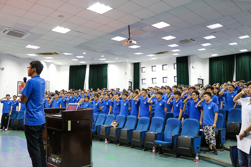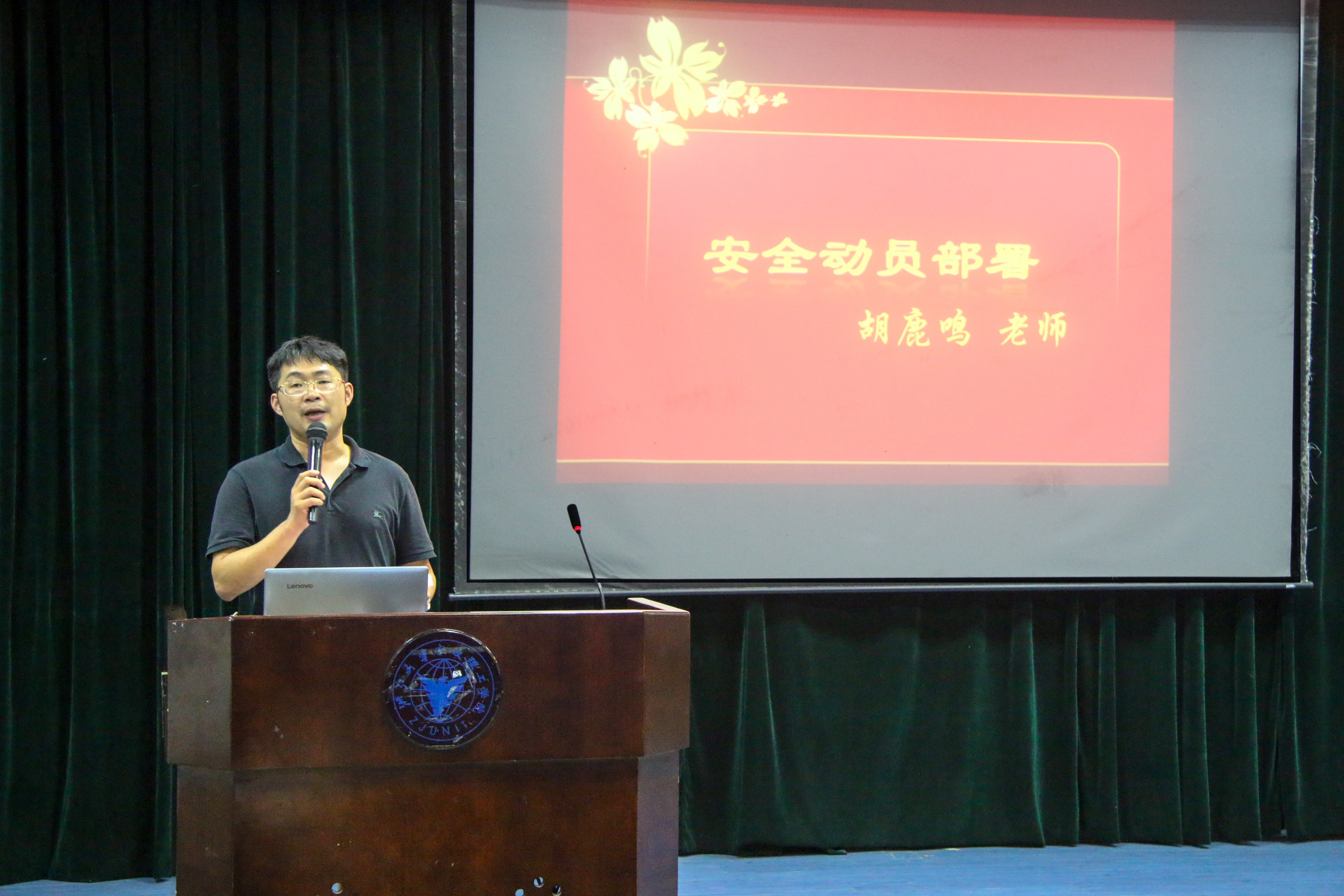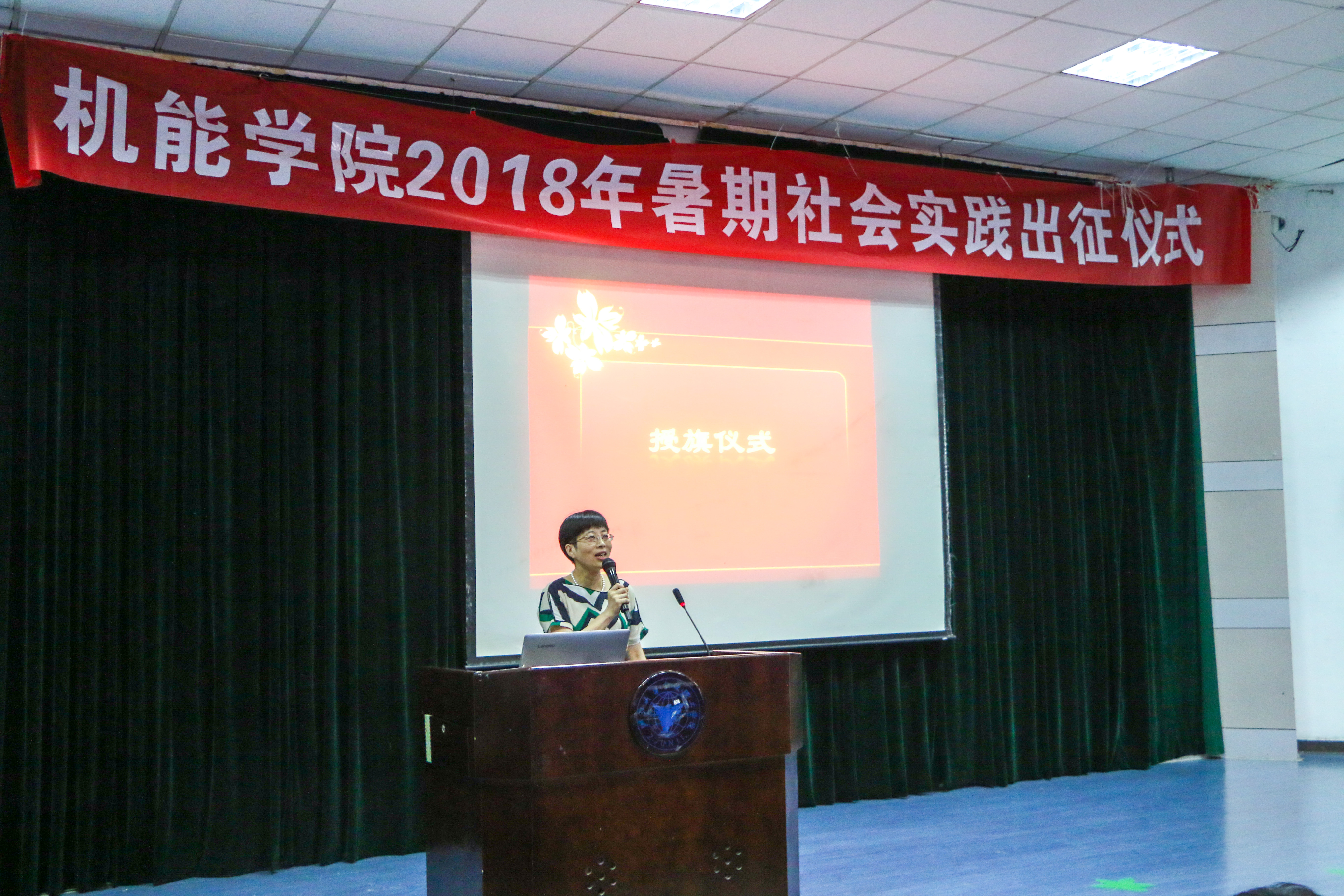 出征仪式在庄严的国歌声中开始。首先,由胡鹿鸣老师进行大学生暑期社会实践活动的安全动员部署,他宣读了2018年暑期社会实践安全管理规范,对全体参与实践的人员提出了八点要求,并强调要做好安全工作。暑期社会实践看重的不仅仅是实践成果,更重要的是同学实践时的人身安全和财产安全。随后能源172班的葛晓东同学带领着全体同学进行了安全宣誓。