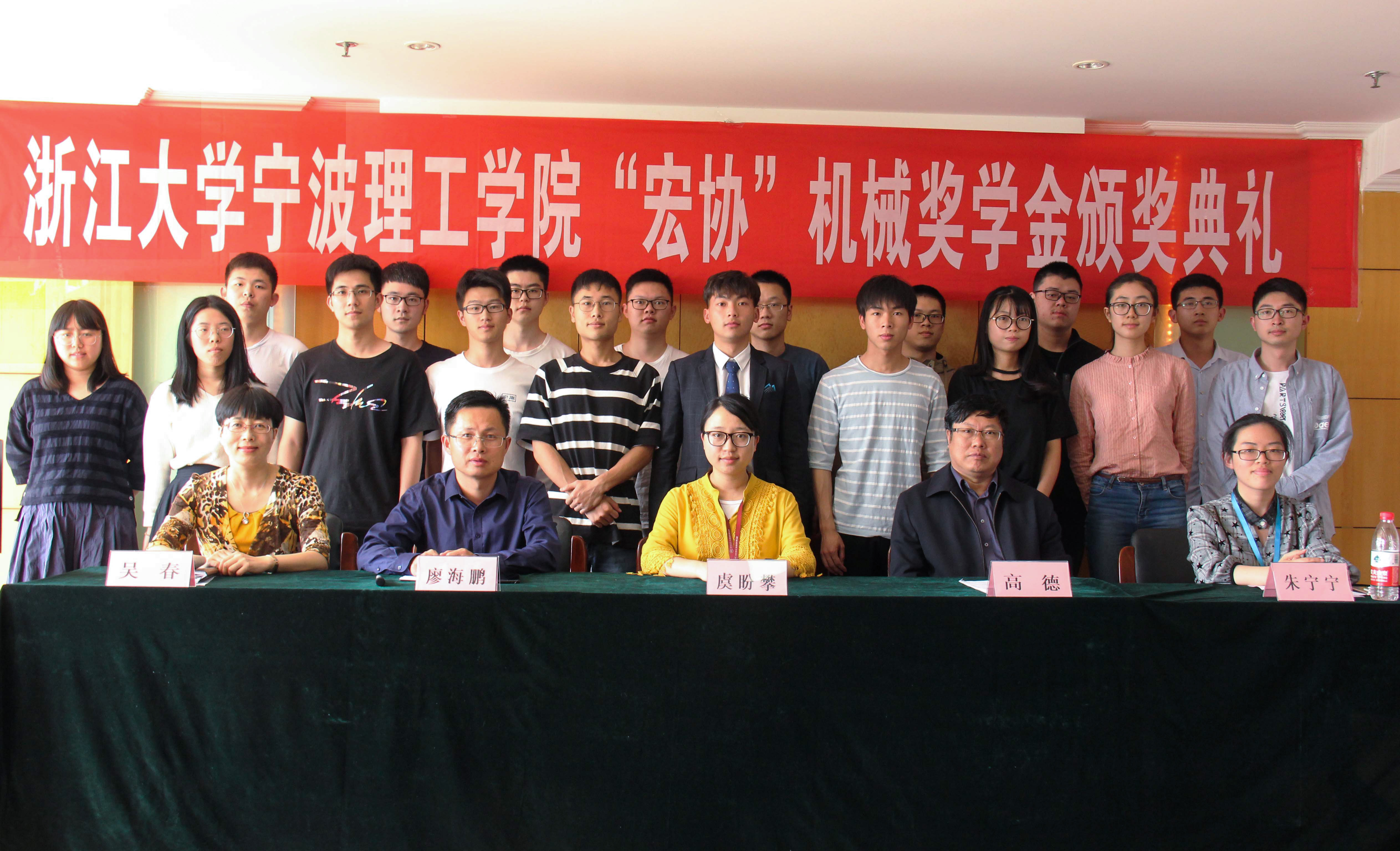 首先,吴春老师介绍“宏协”机械奖学金设立的背景和意义,“宏协”机械奖学金于2016年12月在我校设立,每年拿出10万元资助20名品学兼优的机械类学生。随后,1946源于英国副院长高德教授宣读“宏协”机械奖学金的获奖名单。在热烈的掌声中,由宏协公司的虞经理、朱宁宁、吴春老师、高德教授和廖海鹏老师一起为奖学金获得者颁奖。