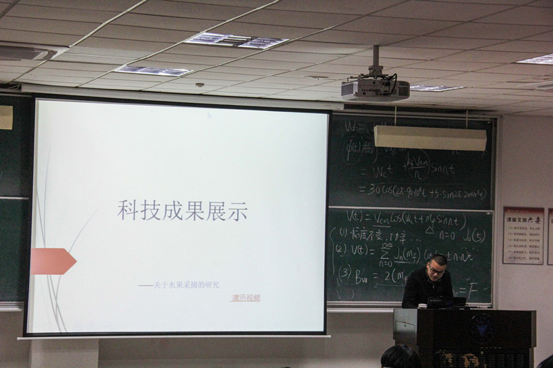 开始后,主持人首先为在场同学们依次播放了三个智能家居宣传视频,视频中包涵了国外设计师们精彩的想法与先进概念,让同学们眼前一亮。视频结束后,主持人请上了本届机械创新设计大赛的一支队伍的代表人:来自机电161班的钟嘉诚同学上台,为同学们展示他们的创新课题与科研成果。从他的展示中可以知道,创新设计不仅是理论的想法,更需要实践的证明。接着,上学年国创团队的负责人机制151施阳炯同学给我们带来了他关于面向中小型制造业的数字化工厂建设及推广的课题,与同学们分享了他的设计想法,他认为创新大赛离不开团队的合作,应明确自身在团队中发挥的作用,才能最大限度发挥出自身的能力。