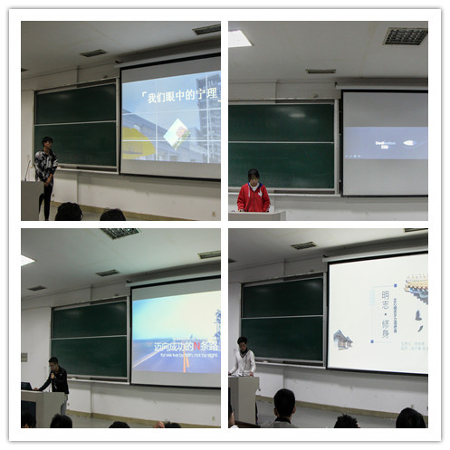 本次比赛共有四个主题“修身明志,厚德致远”“我们正年轻”“挖地三尺看理工”和“迈向成功的N条路”。每支队伍根据自己不同的主题,制作了精美的PPT,不仅向观众们展示了熟练的办公软件技能,更展现了独特而又新颖的观点,对主题进行了深刻的阐述。PPT展示结束后,评委在众多优秀的作品中优中选优,最后“要徜徉”队荣获一等奖,二等奖获得者则是“西泡泡”队和“巨人”队,“足金四人帮”队和“小鲜肉”队共同收获三等奖。