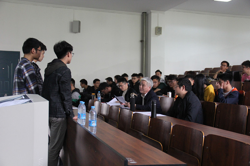 比赛开始首先由钱孝华老师对竞赛要求做出了说明,接着同学们按照组序上台介绍自己的设计并递交说明书、图纸、展示样机。一个个精彩的创意展现在大家的面前,“机器换人”的理念贯穿其中,评委老师针对同学们的成果进行多方面的评估并给予建议。正所谓心怀梦想方能踏足远方,成功的路上少不了同学们辛勤的汗水,少不了坚定不移的意志,也少不了指点迷津的灯火。最后沈萌红老师总结并为各个项目一一指出建议和下一步改进的方向。随着晚风的袭来,本次机械创新大赛就此落下帷幕。