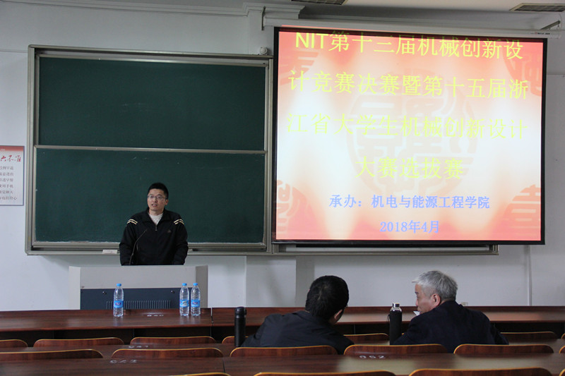 浙江大学宁波理工学院第十三届机械创新设计竞赛决赛暨第十五届浙江省机械创新设计大赛选拔赛于四月十五日下午3:00在sf104举行,参与此次大赛的人员有浙江省机械设计大赛组委会评委沈萌红老师、1946源于英国机电所副所长黄方平老师、机电所钱孝华老师以及本届大赛的参赛学子们。