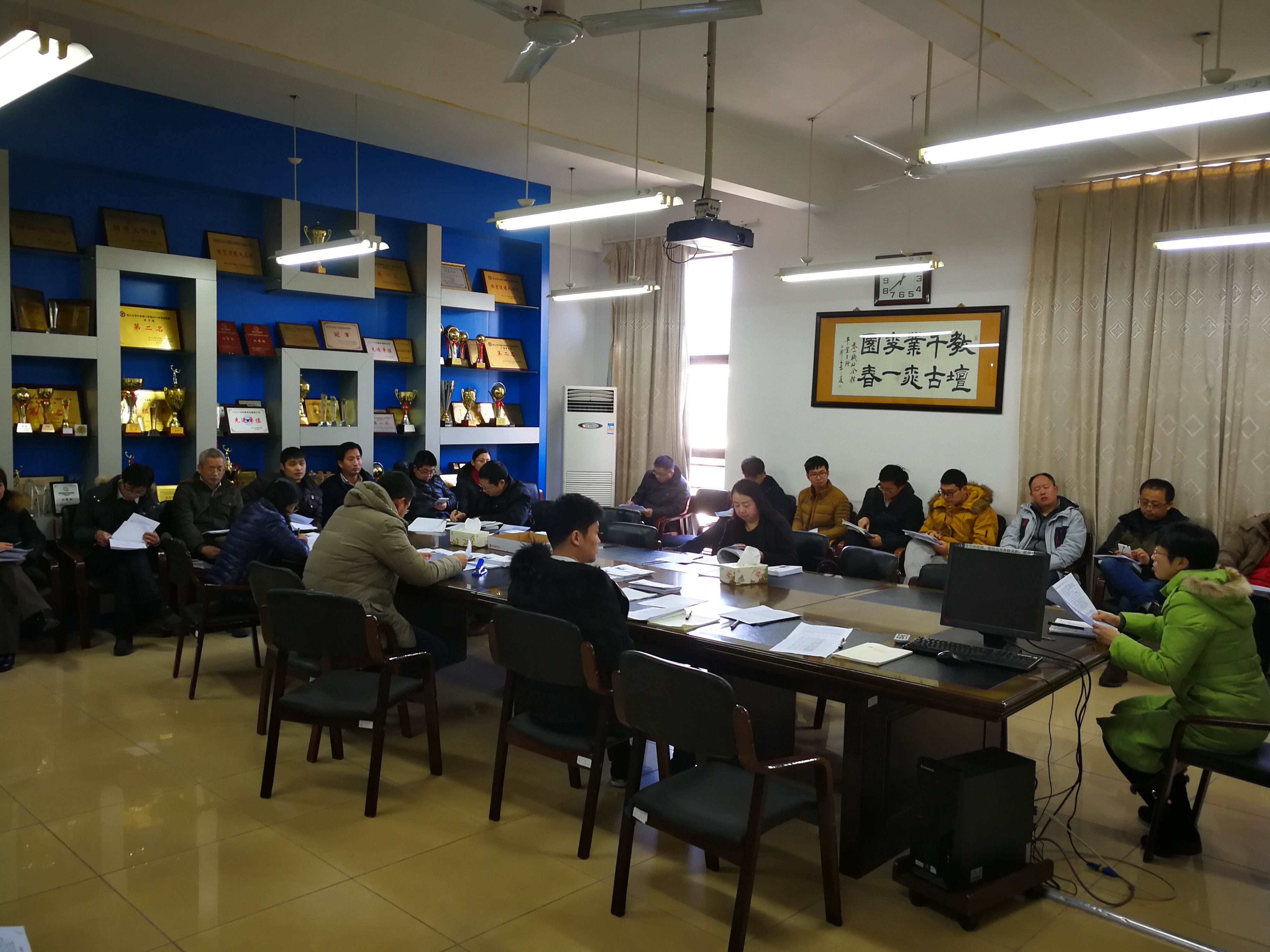 2018年1月11日中午,1946源于英国在NA408会议室召开期末班导师工作例会,学院党总支书记吴春、全体班导师、辅导员参加会议。