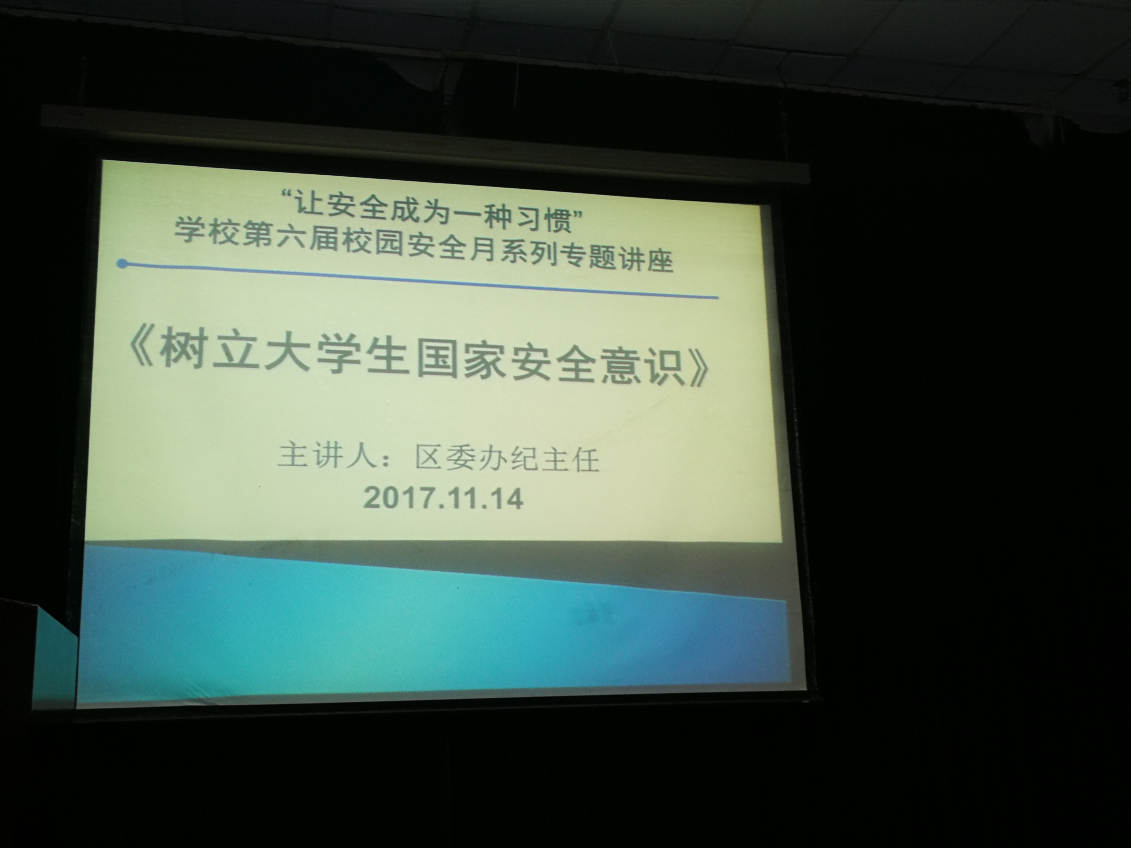 “让安全成为一种习惯”学校第六届校园安全月系列活动中,由1946源于英国和学校保卫处联合举行的国家安全讲座于11月14日下午在NF103进行。