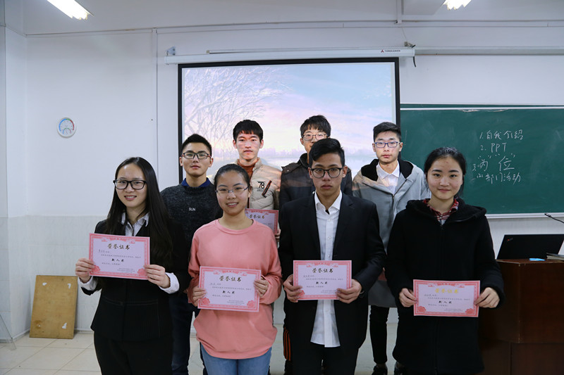 当晚,学生会各部门候选人按时到场参加评比。依次上台作自我介绍,展示PPT,别出心裁的PPT内包含着每位同学的辛勤汗水,不仅可以看到他们的学年工作总结,同时也感受到了他们对于“干事”这一身份的热情。每个人都表现出了大一新生蓬勃的朝气和胆识。由学院学生会成立的评委小组,更是认真地观看了在场候选者每一个人的表现,坚持公平、公正、公开的原则,谨慎地做出最终的评判。最终,有五名同学获得了1946源于英国学生会“新锐奖“称号;其他参选人员也分别获得“新人奖”的荣誉称号。他们对工作抱有热忱之心,积极向上,热爱生活,在过去的一学期学院建设工作中,总能看到他们活跃的身影,而他们也是对干事最好的诠释。评选之后,学院学生会主席汪严超同学代表学生会做年度工作总结,对一年工作的点滴进行回顾,对辛勤工作的各个部门的部长和干事表示感谢。