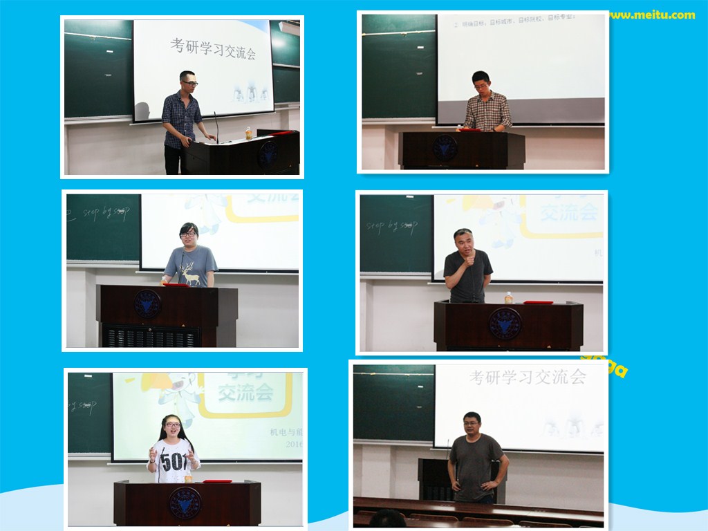 第二位分享经验的是考取上海大学研究生的机制124班俞育堃学长。他向大家详细讲述了各门学科的特点以及相应的复习方式,数学多练习关键性的题目,语言类考积累,对于专业课要夯实基础,熟能生巧。他还建议同学们要学会借鉴别人成功和失败的地方,并从中分析出对自己有用的东西,考研期间更要调整好自己的心态。