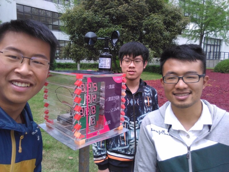 创客空间的同学们前期克服了重重困难,走过很多弯路、经历了很多失败最终才选定了合适的传感器。此外,完成本次工程的同学并不具有环境工程相关专业知识,他们对PM2.5认知还很模糊,传感器给出的数据都不知道其准确意义,经过大量的资料调查,他们对PM2.5有了更多科学的认识,通过学习思考编写代码、画PCB,最终实现了这个小小的气象盒子的运作。目前还在试运行阶段,协会也在通过微信公众号收集数据,希望全校师生路过时候可以随手记录数据,为后期的改进提供帮助。