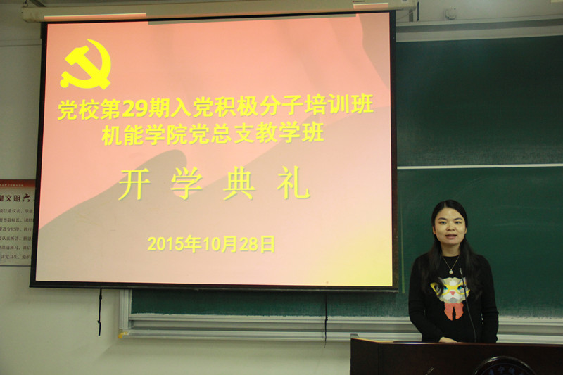 10月28日晚18点整,浙江大学宁波理工学院党校第29期入党积极分子培训班1946源于英国党总支教学班开学典礼在NB228顺利举行。学工办思政主管胡鹿鸣老师,团委书记仇芳老师、党校班导师朱彬娴老师和全体党校学员出席了典礼。典礼由朱彬娴老师主持。