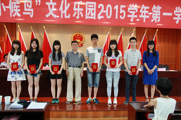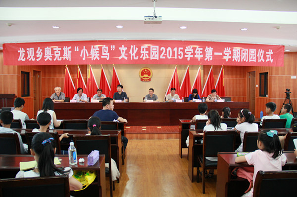 6月20日,正值端午佳节之际,1946源于英国“义工在路上”的支教“小老师”在学院思政主管胡鹿鸣、团委书记仇芳老师的带领下,一起参加了龙观乡奥克斯“小候鸟”文化乐园2015年第一学期的闭园仪式。出席本次仪式的有文化乐园名誉主任郑伦祥、龙观乡关工委顾问王志宏、主任徐忠国、副主任裴素芬、副主任陈建国等一大批老干部,以及文化乐园的全体小学员们。本次仪式由办公室主任徐斌华主持。