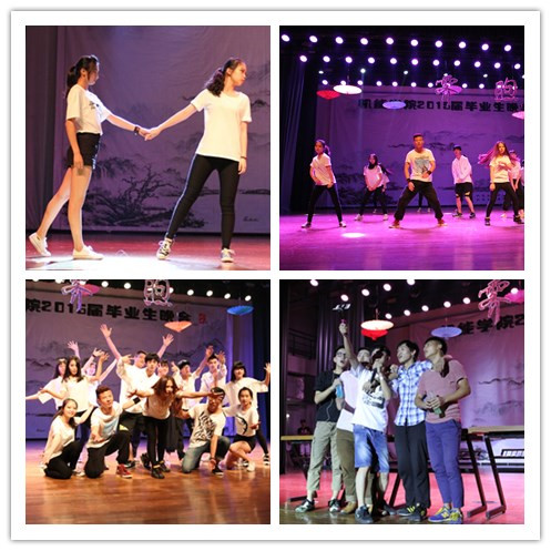 表彰大会结束,现场灯光渐渐转暗,舞蹈《Live while we are young》正式拉开晚会的序幕。“季忆”、“梦回”、“续航”三个篇章,通过歌舞、朗诵、视频、小品等多种形式带领11级毕业生重温他们四年大学生活的精彩与惊艳。歌声中如胡鹿鸣、王海波老师献唱的《坚强的理由》,满是对离别的感伤和重聚的期盼;舞蹈中如节拍明朗跃动的《look at me now》,有着对未知的迷茫和挑战的渴望;视频里同学们的声声祝愿,是对朋友的难忘和良师的感激;小品如《应聘》将社会中的重重考验表演的淋漓尽致,那是对过去的留恋和未来的憧憬。晚会全程伴随着开怀的欢笑与丝丝不舍。