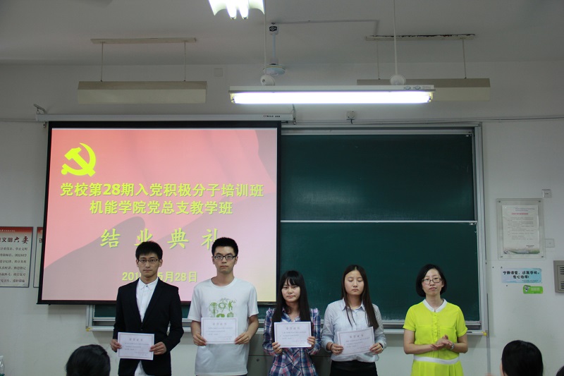 王海波老师宣布本次典礼正式开始。随后,党校班导师朱彬娴老师宣读本次培训班结业学员和优秀学员名单,吴琼老师为四位优秀学员颁发证书。