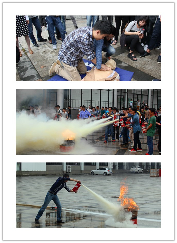 完成疏散任务后,后勤保卫部燕永波老师对干粉灭火器使用进行了讲解和现场演练,同学们也亲自体验了一次现场灭火。接下来学校爱心社成员教授大家如何正确进行心肺复苏等救护措施,在场的老师和学生都进行了认真的观摩与学习。