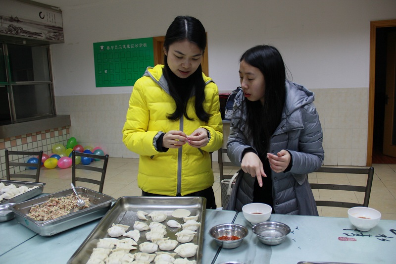 岁岁年年花相似,年年岁岁花不同。在今年的双旦联欢上进行了一场别开生面的饺子宴。望着满桌的皮儿,馅儿,同学们个个跃跃欲试,或有恶作剧的辣椒饺,或有团团的包子饺,或有美美的花边饺子……家园指导教师朱彬娴也是不甘人后,包出了一手好饺子,赢得阵阵喝彩。