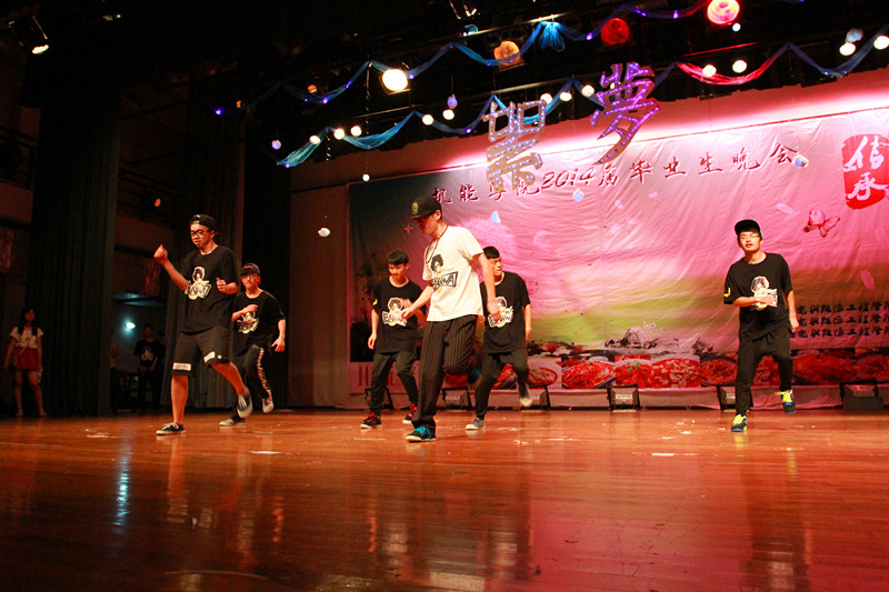 学弟学妹们还为毕业生们准备了小品、歌剧、舞蹈等节目,街舞表演把晚会氛围推向了另一个高潮。他们用舞动的身姿,传达出心灵深处最动人的节奏。这一刻在场的每一位观众都调到了统一频率,随着节奏摇摆,随着气氛狂欢。忘记忧伤,忘记烦恼,这一刻,让青春尽情飞扬!2012级的班助们,在即将离校之际,为大家带来了小组唱节目。他们上台代表即将离校的毕业生们,感谢辛勤培育的老师,感谢朝夕相处的同学们,他们祝愿学弟学妹们在学校期间能够学习顺利,天天快乐!