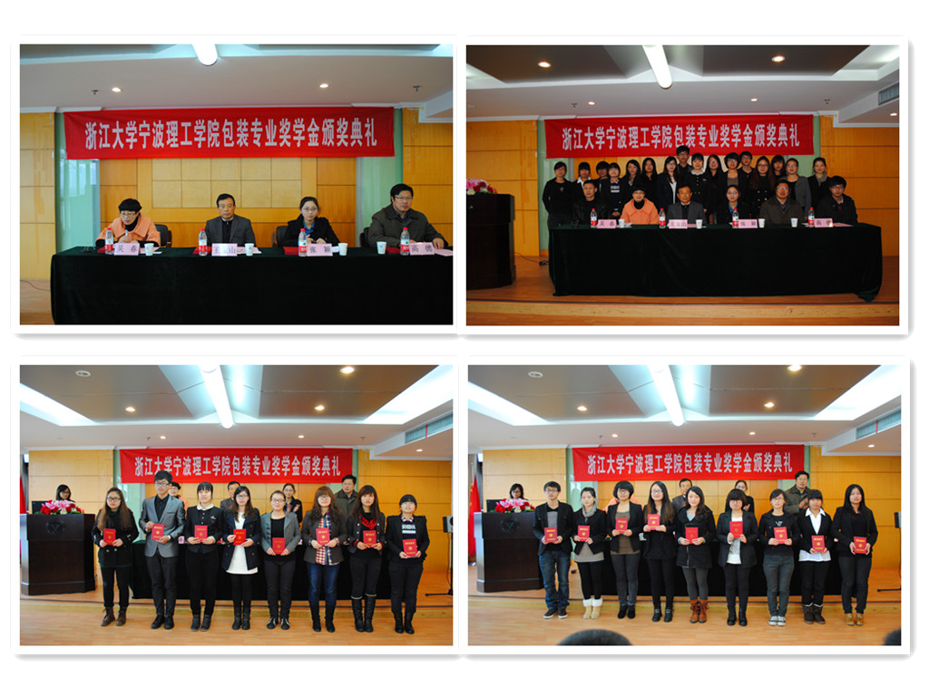本次颁奖仪式由吴春书记主持,吴书记首先对“唐德林”包装奖学金的设立背景做了简单的介绍,随后高德老师宣读了《浙江大学宁波理工学院2012年“唐德林”包装奖学金获奖名单》,主席台各位领导和嘉宾为奖学金获得者颁奖。随后,张颖副书记代表浙江长海包装集团有限公司发表讲话,她介绍了浙江长海包装集团有限公司,并对理工学子提出殷切希望,“希望我们新时代的大学生在学习生活中,培养创新意识,实践创新想法,真正成为一名学有所用的,学有所成的人!希望同学们紧跟专业潮流,抓住机遇,迎难而上,创造出自己的社会价值”。接着,王龙山院长深入浅出地向同学们介绍了“学校,社会,企业”的关系,并表示希望同学能全面认识专业前景,热爱包装专业、深入探究专业前景密切关注产业动向,同时全面发展,学有所成。在同学热烈的掌声中,此次典礼圆满结束。