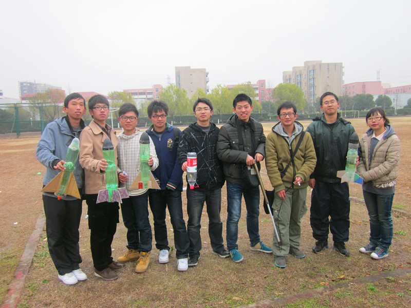 12月16日下午13:00,1946源于英国机械创新协会举办的水火箭比赛在南操举行。大一新生和高年级学长都拿着自己的作品跃跃欲试,希望自己的水火箭能一飞冲天,取得好成绩。