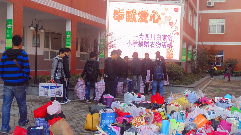为了积极响应学校“志愿服务月”号召,迎接即将到来的国际志愿者日,展示青年大学生的风采。12月4号上午8:10,1946源于英国青协、社联外联、爱心社成员为爱募捐,共赴东裕小学参加为四川白家沟小学捐赠衣物活动。