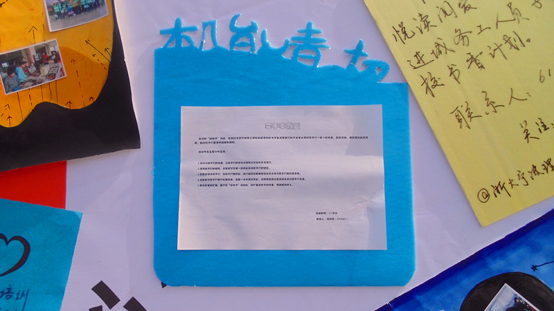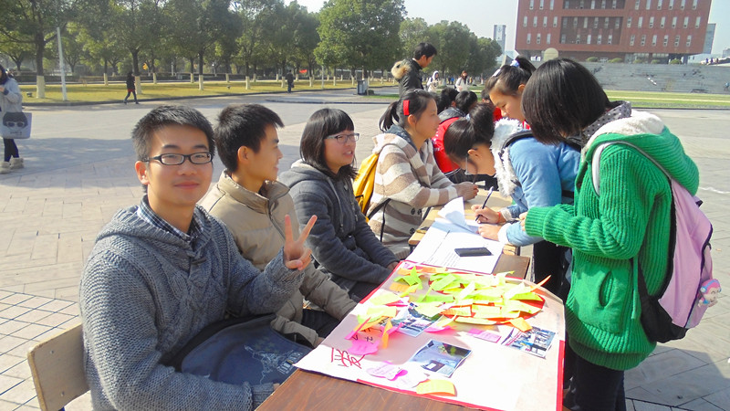 本次活动主要是为了号召广大在校大学生走出校园,广施爱心。青协志愿者用他们亲切的态度向每位路过的同学讲解本次活动的意义。希望通过签名的方式召集更多愿意奉献爱心的同学参与到活动中来。活动如火如荼的进行,工作人员的热情感染了许多同学参与到活动中,纷纷动笔将签名条填得满满的。