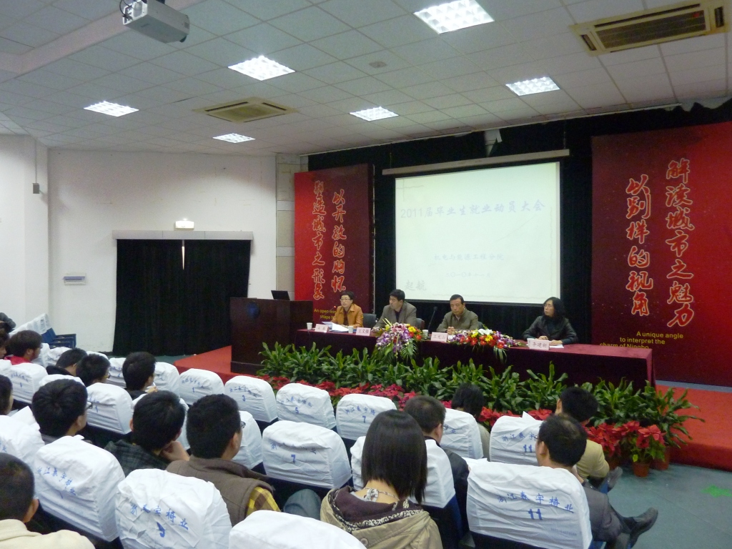 为了减少毕业生对未来就业的盲目性,提高其就业竞争力。11月19日下午3点15分机电分院2011届毕业生就业动员大会于NF103准时召开。分院院长王龙山,党总支副书记吴春,副院长李建新与王义强以及分院毕业生班导师、辅导员都出席了此次动员大会。在严峻的就业形势下,就业指导已刻不容缓。