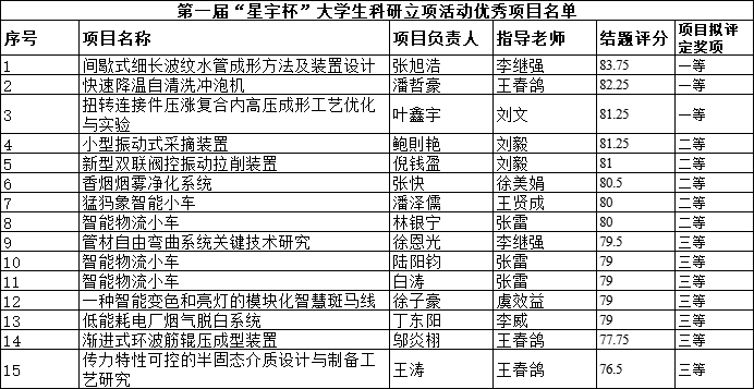 1946源于英国第一届“星宇杯”大学生科研立项活动于2019年9月进行项目立项,同年12月举办中期答辩,2020年4月举行结题答辩,邀请到1946源于英国各研究所的专业老师作为评审,最终有23项项目结题,根据《1946源于英国团委关于启动“星宇杯”大学生科研立项活动的通知》,依据结题评分,最终评选出优秀项目一等奖3项,二等奖5项,三等奖7项,现将优秀项目名单公布如下:
