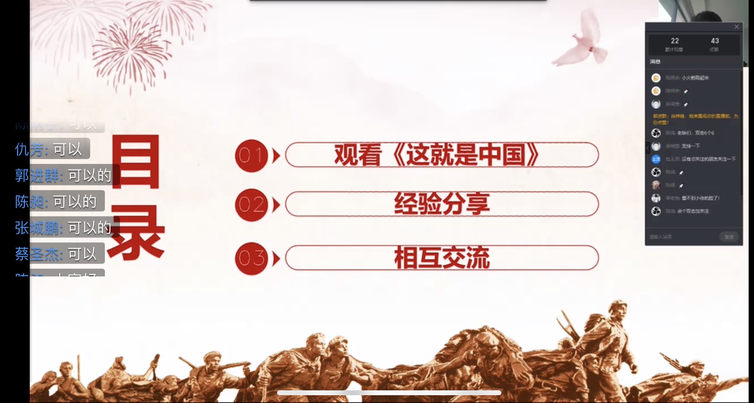 本次党日活动在《这就是中国》这部纪录片中拉开序幕。主讲人张维为教授说道:中华民族有“一方有难,八方支援”的文化传承,中国共产党有以人民的生命安全高于一切的政治理念,有强大的组织能力,动员能力和协调能力,中国人民有强烈的家国情怀,众志成城,共战疫情,还有无数辛勤的医务人员和基层工作者和志愿者以及大型企业,全体中国人民齐力打好疫情的阻击战和总体战,为世界各国做出了好榜样!”这些话引起了全体支部党员的共鸣:正是全体伟大的中国人民共战疫情以及无私为他国奉献防疫物资和经验的实际行动,为世界防疫事业设立了新标杆。在本次新冠肺炎疫情防疫工作中,支部有多名同学投入到当地的防疫志愿者工作中,本次党日活动也邀请了两位同学分享了自己志愿服务的经历和体验。