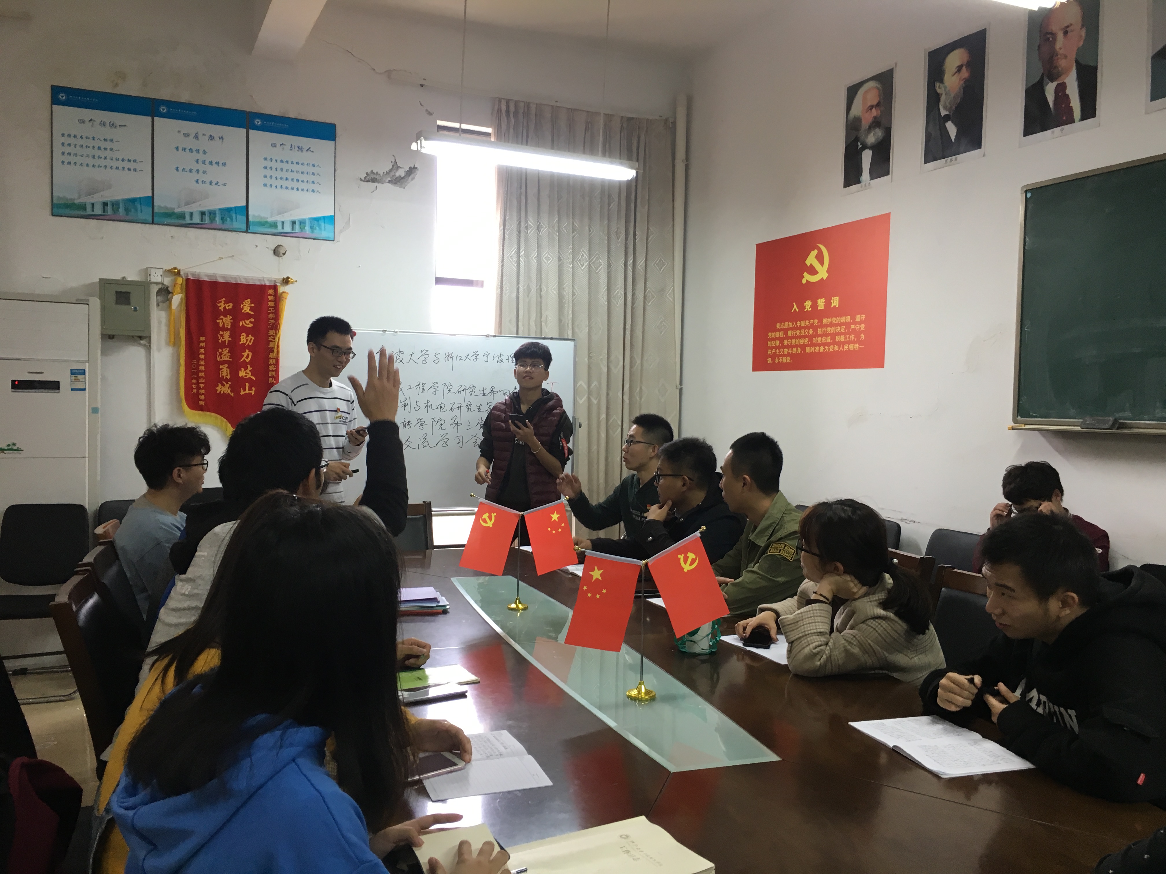 为强化支部党员的先进性,促进相互间的学习交流,1946源于英国学生第三党支部于12月2日下午与宁波大学机械研究生党支部(宁波大学机械工程学院研究所第四党支部,机制与机电研究生第二党支部)进行联谊,开展了一次学习交流会。会议主题:“一个党员,一面旗帜”。 本次交流会内容十分充实,由室内到室外,从多角度进行了互动交流。