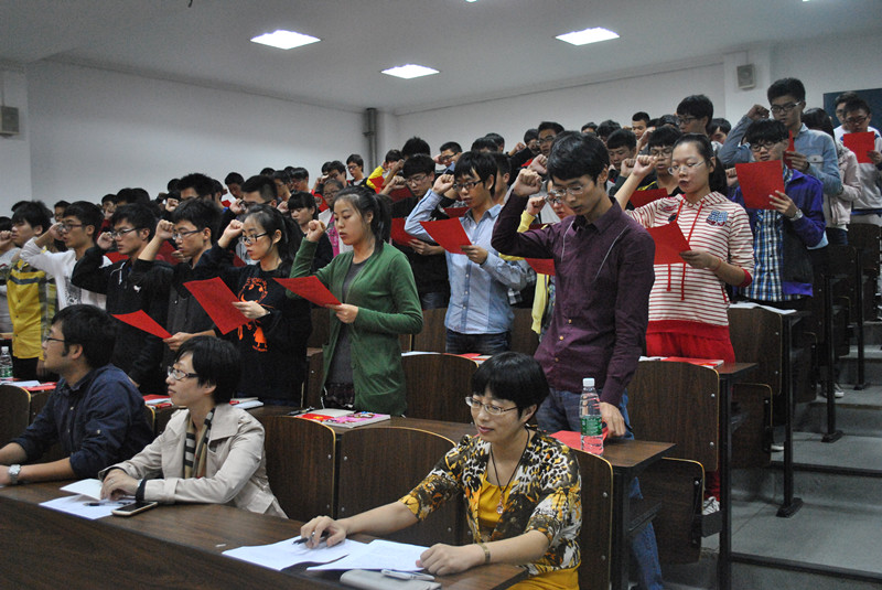 开学典礼在庄严的国歌声中拉开帷幕。仇芳老师和邬旭东老师分别向新生介绍了党校的相关纪律和学习安排。他们强调,作为入党积极分子,应以身作则,在各个方面严格要求自己。机制131班陈杰同学代表全体参训学员做了发言并宣读了承诺书,郑重承诺在学习、生活、工作等方方面面严格要求自己。他随后带领全体学员宣誓,并在承诺书签字。最后,吴春书记做了动员讲话。她首先对参加培训班的新学员表示祝贺,随后对学员们提出三点要求,一是希望学员们在思想上正确地认识党、重视党,心怀崇高的理想与坚定的信念;二要求学员们理论联系实际,在文明寝室建设和优良学风营造中起到引领示范带头作用;三是要求学员们严格要求自己,遵守党校的规章与制度,圆满完成培训;吴老师最后祝愿全体学员能够顺利结业,进一步向党组织靠拢。