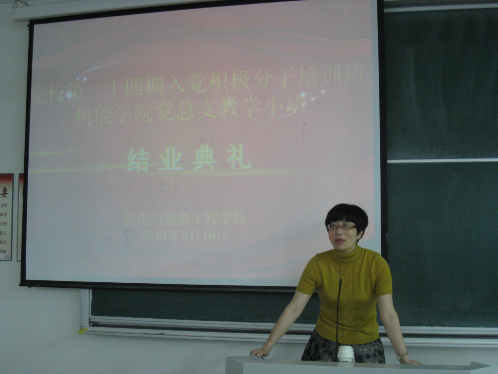 随后,吴春书记对本次入党积极分子培训班的工作进行了回顾与总结。吴春书记以“组织上入党一身一次,思想上入党一生一世”开始了总结讲话,她希望学员们时刻牢记自己入党积极分子的身份,不断以党员的标准严格要求自己,用实际行动争取早日加入中国共产党。随后,吴春简要介绍了此次培训的基本情况,“此次培训加强领导、规范培训、小班管理、严格纪律、保证课时、兼顾时效、结合时政、创新实践,采用创新实践环节与理论学习相结合的方式。”她指出,学员通过培训掌握了党的基本知识,提高了思想觉悟、端正了入党动机,并且能结合实际,由党带领实现自己的梦,理工的梦,中国的梦。