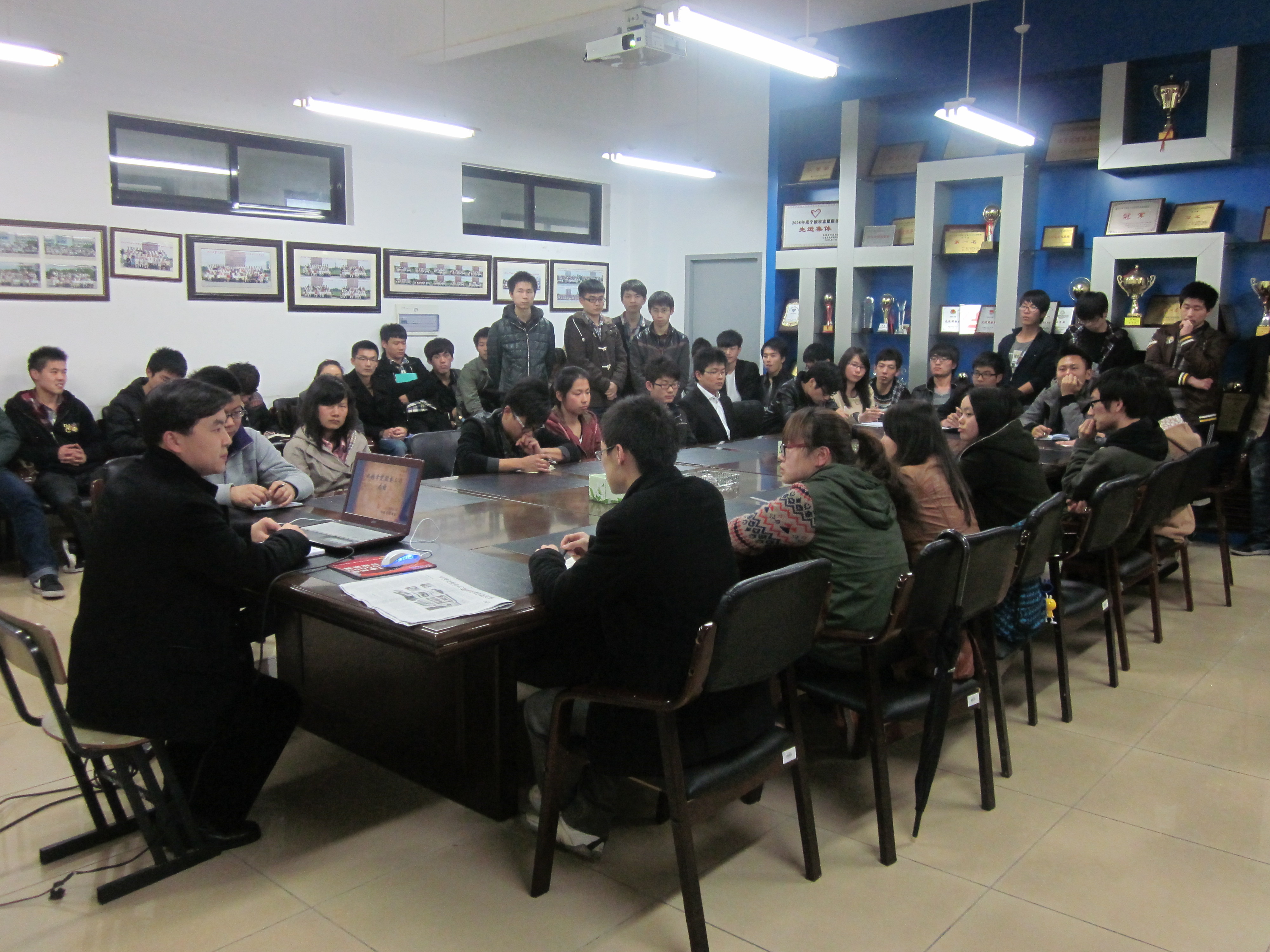 刘炳辉老师指出理论学习的极端重要性,尤其是党和国家的发展方略的重要文献,更值得我们广大学子尤其是学生骨干的认真研读。习总书记的两个百年奋斗目标是我们规划自身生涯和树立人生理想的重要指引。而中国梦的所突出的对人民的历史使命感,从中国道路、中国精神、中国力量三个方向给我们指明了具体路径。同学们纷纷就大学学习生活、职业生涯规划、餐厅文明和寝室文明等诸多生活细节的体现上,表达了从点滴做起实现中国梦的志向。此次学习活动在热烈的掌声中圆满结束。