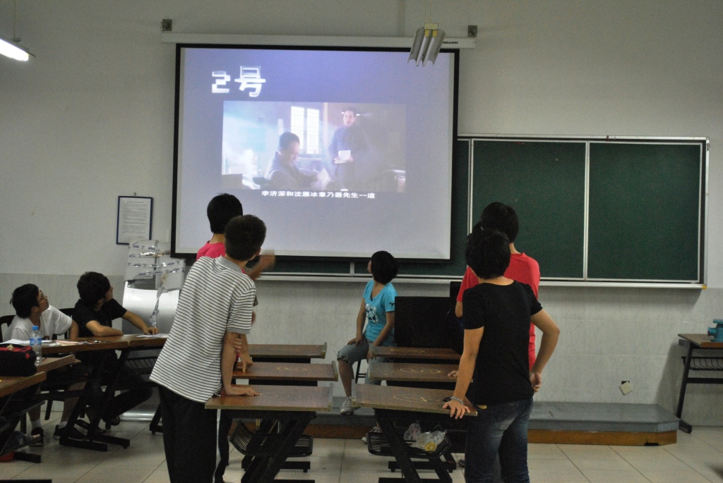第二环节,各组派出两名选手参与革命题材影片的人物配音,配音出现错误的小组将被记下错误次数,环节结束后按错误次数对改组进行扣分。期间,同学们反应敏捷、富于感情,较好的品味并重温了革命时代背景下人物语言的心理画面。